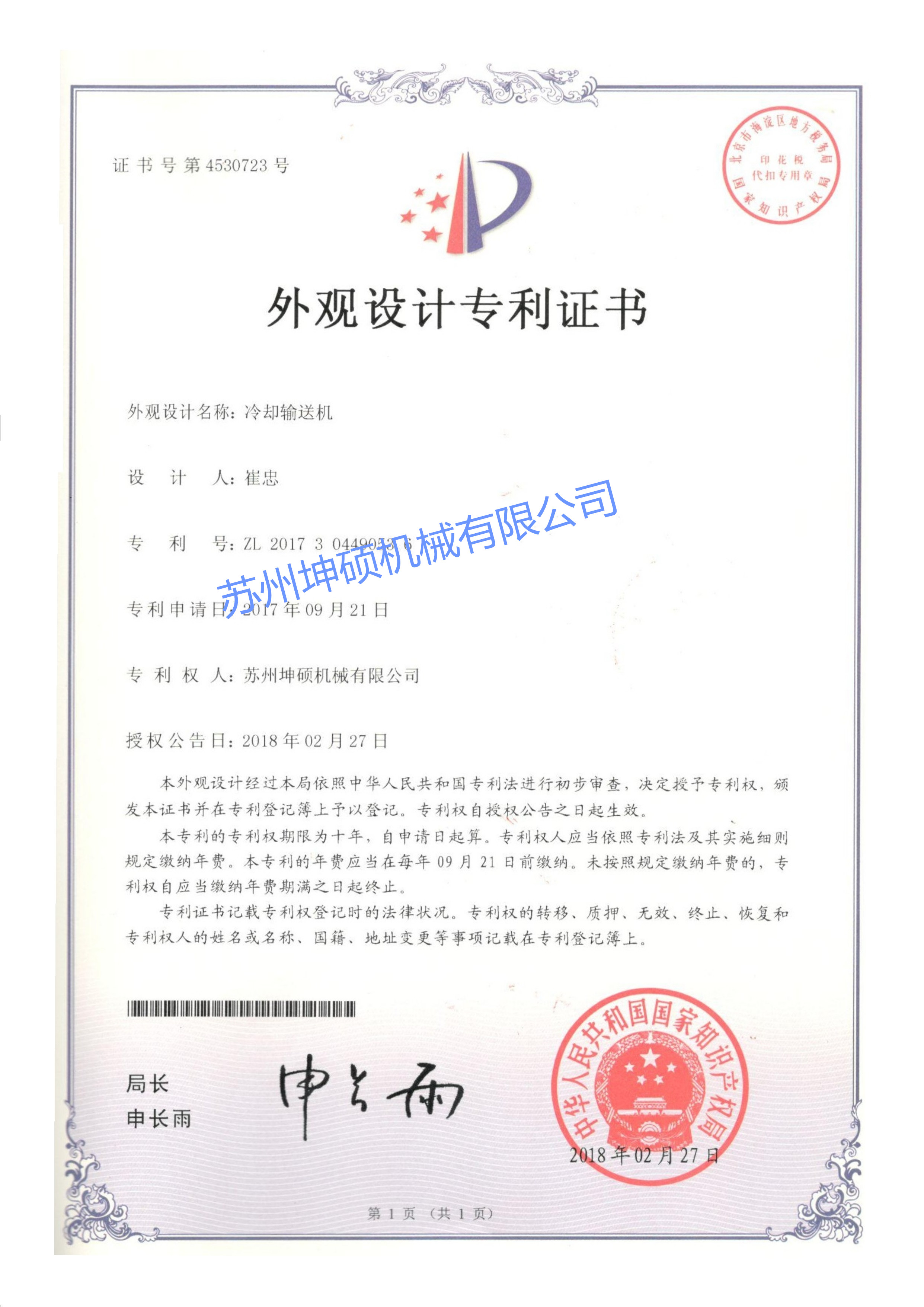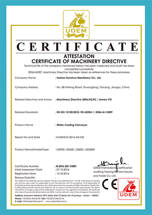 水冷式冷卻輸送機(jī)CE證書