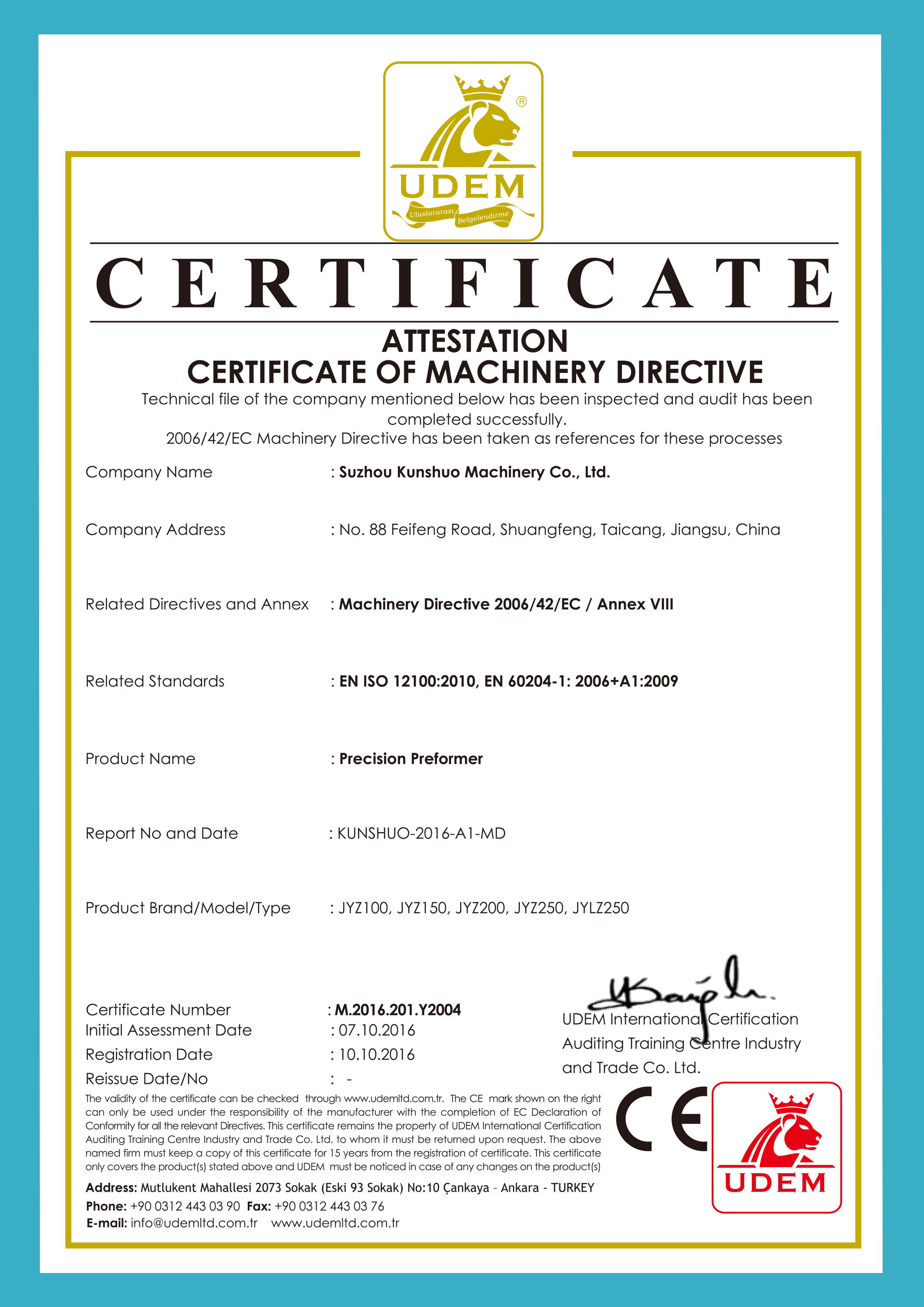 精密預(yù)成型機(jī)CE證書