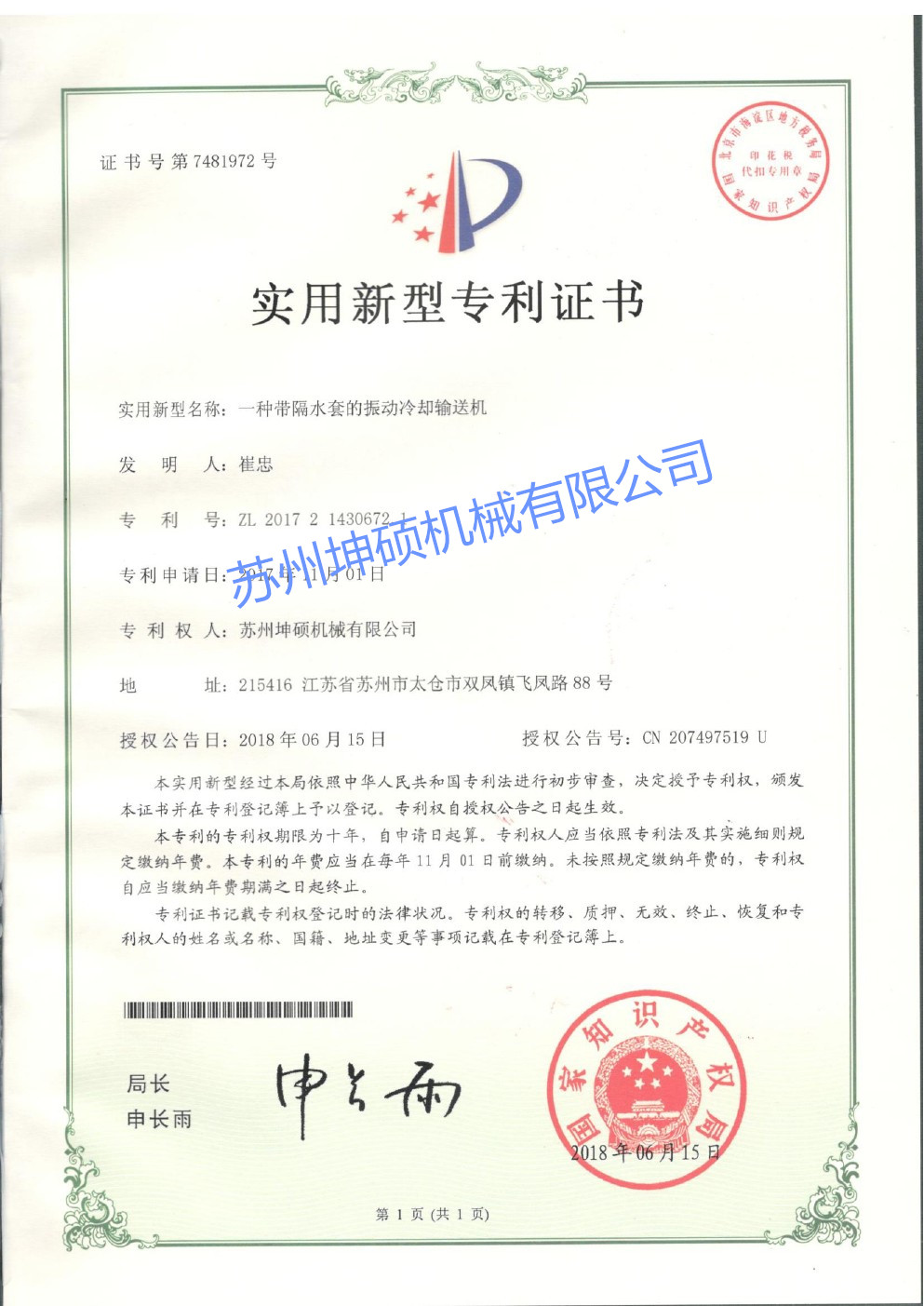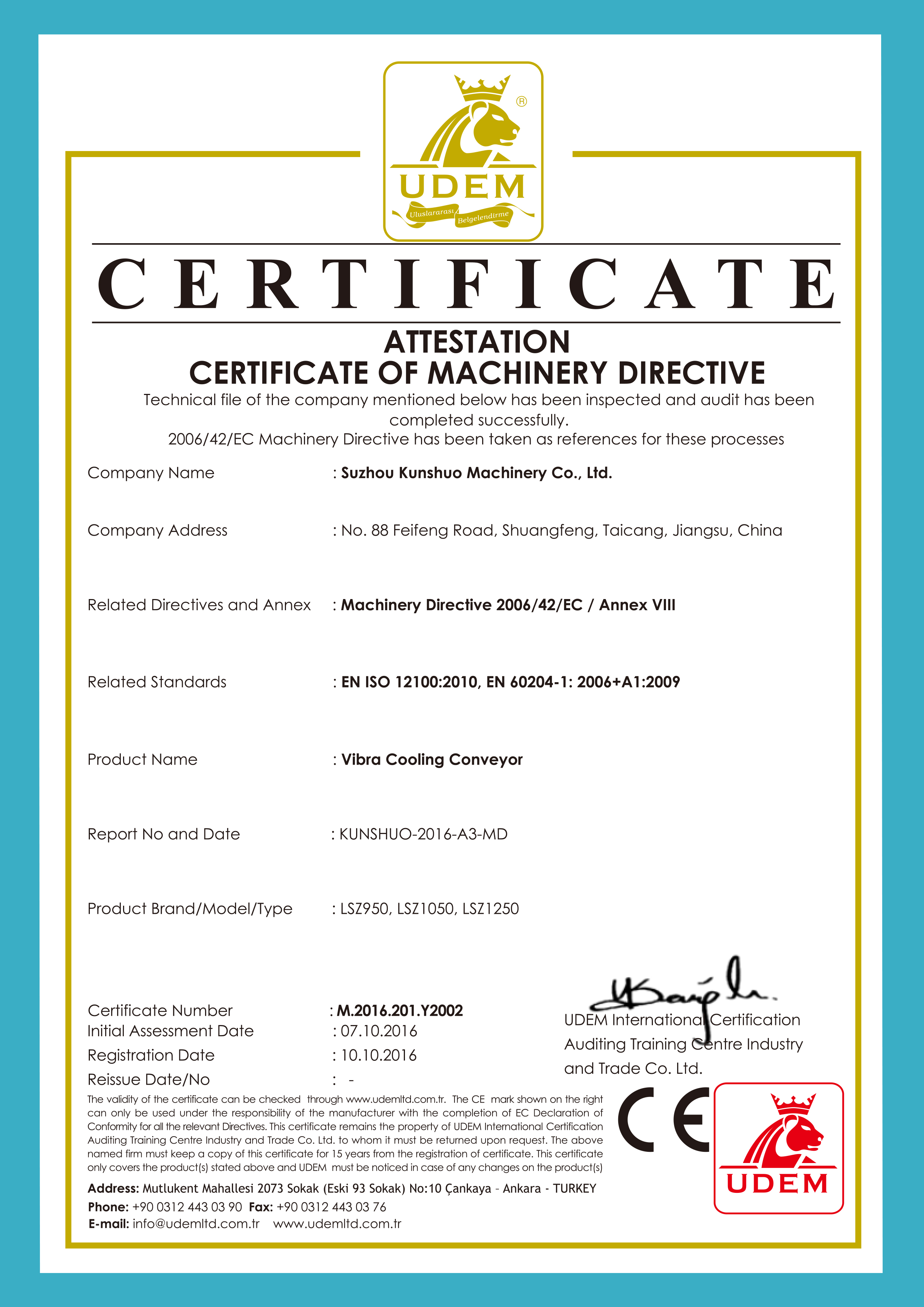 振動式冷卻輸送機(jī)CE證書